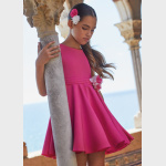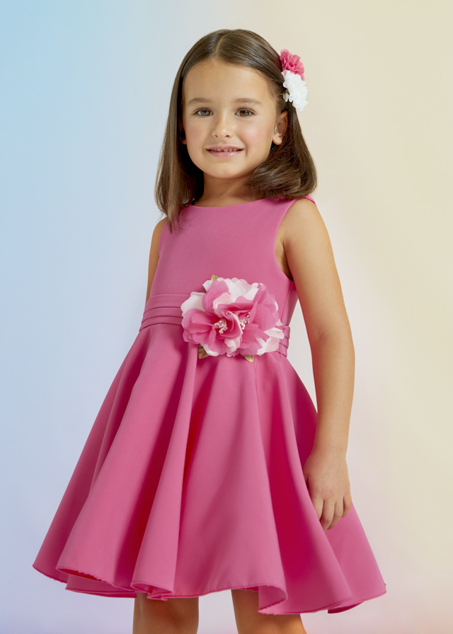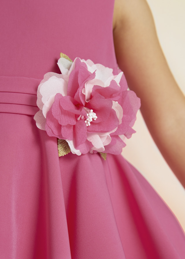Gładka sukienka z krepy dla dziewczynki w kolorze fuksji.