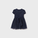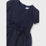 Krótki rękaw z plisowanego materiału dodaje efektu całej kreacji.