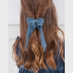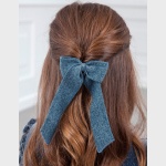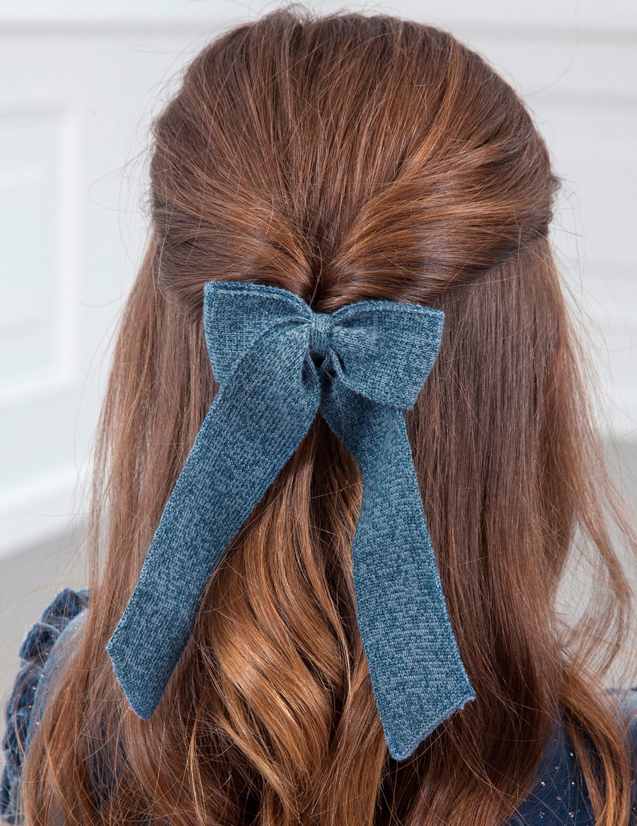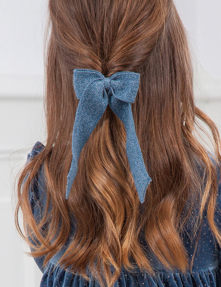 Śliczna trykotowa gumka do włosów z wykończeniem z nici lureksowej. Idealny dodatek, aby dodać uroku wyjątkowej stylizacji.