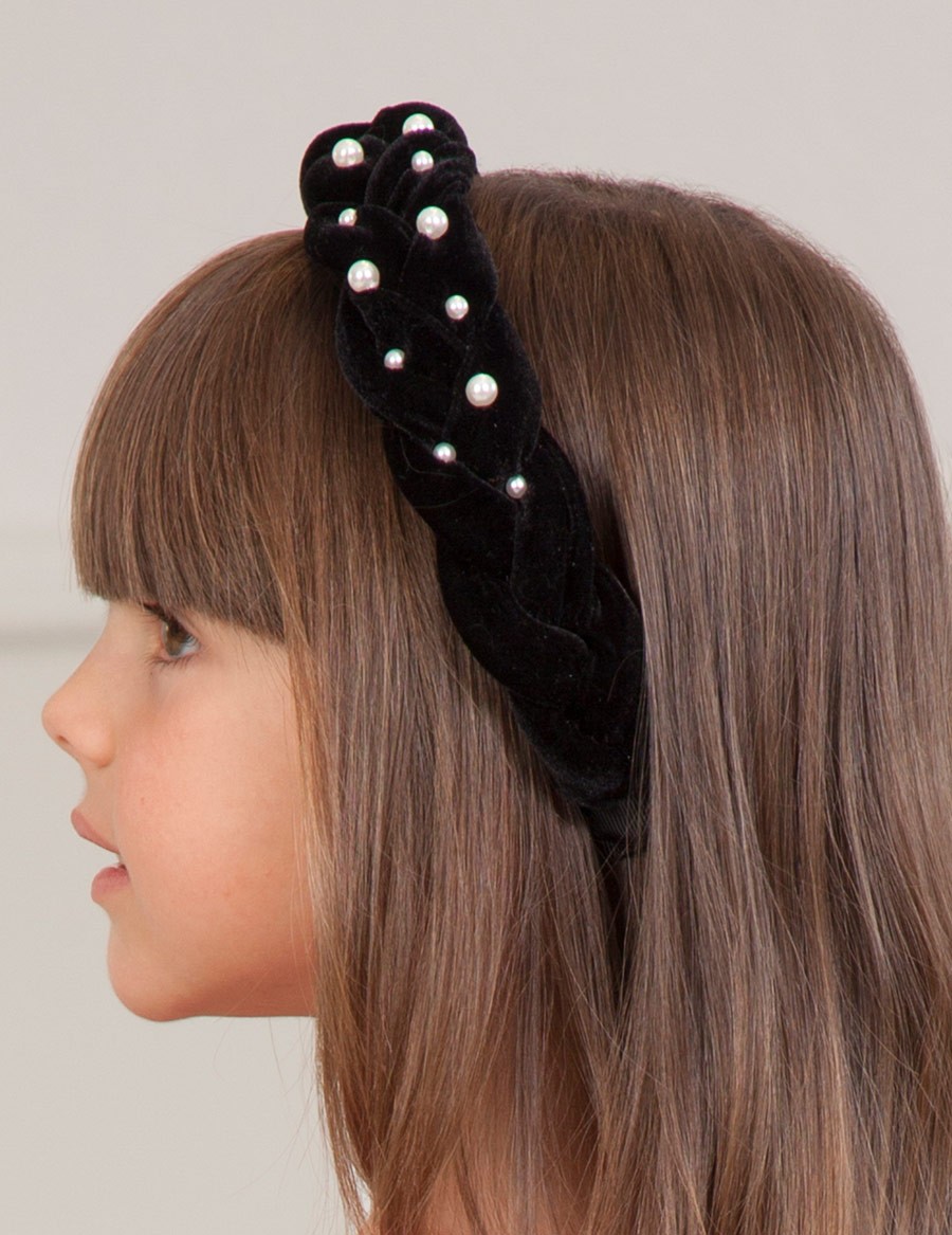 Śliczna opaska do włosów z plecionki ozdobiona perełkami. Idealny dodatek, aby dodać uroku wyjątkowej stylizacji.