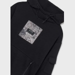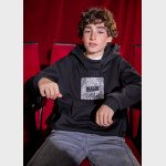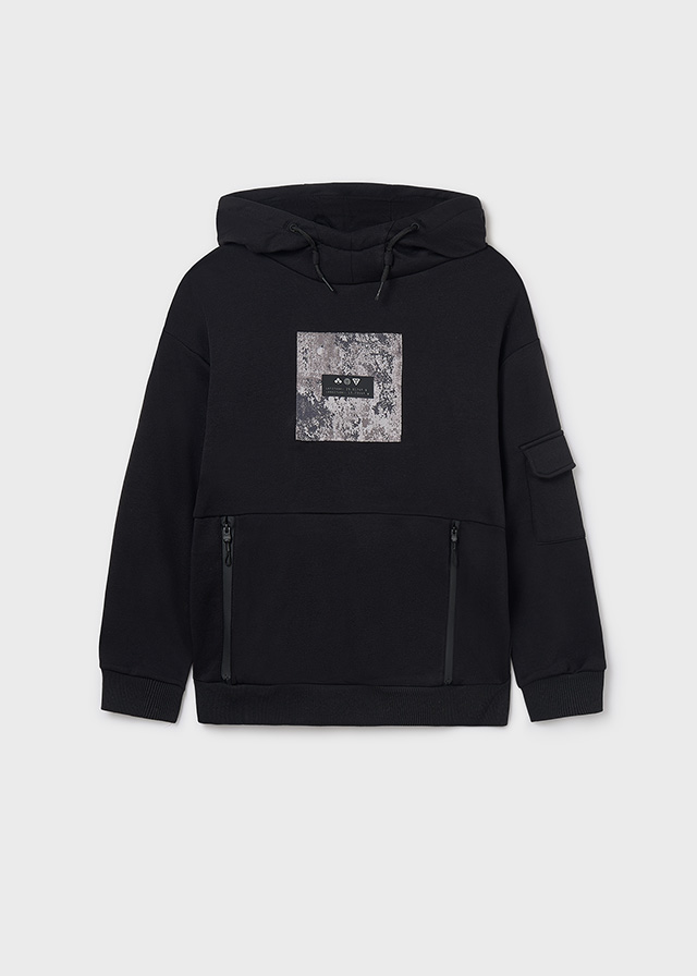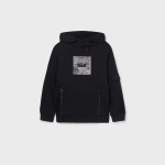 Czarna bluza dla chłopca to wygodna i stylowa propozycja na chłodniejsze dni, łącząca komfort noszenia z nowoczesnym designem. Model wyposażony jest w praktyczny kaptur wszyty w kołnierz, który chroni przed wiatrem i chłodem, a także w funkcjonalne kieszenie boczne, w tym zamykane na suwak – idealne na drobiazgi, które dziecko chce mieć zawsze przy sobie. Uwagę przyciągają ozdobne detale w postaci nadruku wykonanego metodą sitodruku oraz efektownego zdobienia wytłaczanego w technologii high density print, które nadają całości dynamiczny i nowoczesny charakter. Dzięki neutralnemu kolorowi bluza łatwo dopasowuje się do różnych stylizacji, sprawdzając się zarówno w codziennym użytkowaniu, jak i w bardziej sportowych zestawieniach.