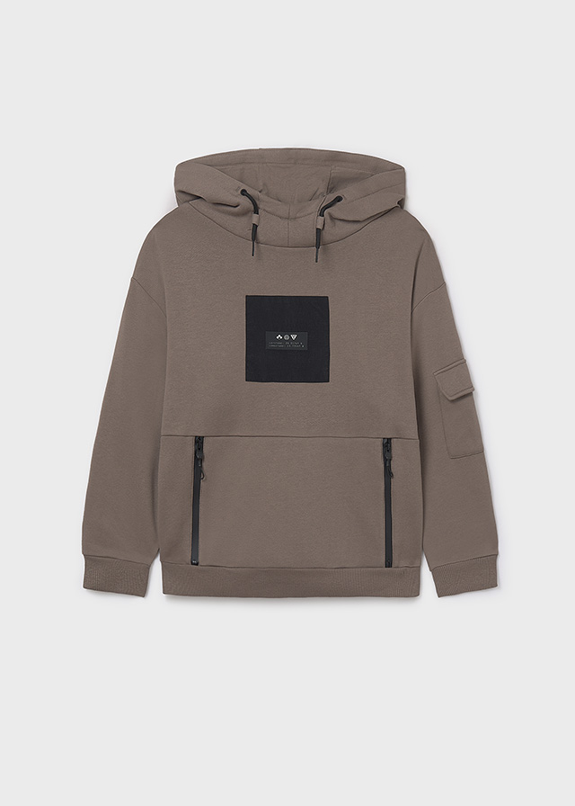 Beżowa bluza dla chłopca to wygodna i stylowa propozycja na chłodniejsze dni, łącząca komfort noszenia z nowoczesnym designem. Model wyposażony jest w praktyczny kaptur wszyty w kołnierz, który chroni przed wiatrem i chłodem, a także w funkcjonalne kieszenie boczne, w tym zamykane na suwak – idealne na drobiazgi, które dziecko chce mieć zawsze przy sobie. Uwagę przyciągają ozdobne detale w postaci nadruku wykonanego metodą sitodruku oraz efektownego zdobienia wytłaczanego w technologii high density print, które nadają całości dynamiczny i nowoczesny charakter. Dzięki neutralnemu kolorowi bluza łatwo dopasowuje się do różnych stylizacji, sprawdzając się zarówno w codziennym użytkowaniu, jak i w bardziej sportowych zestawieniach.
