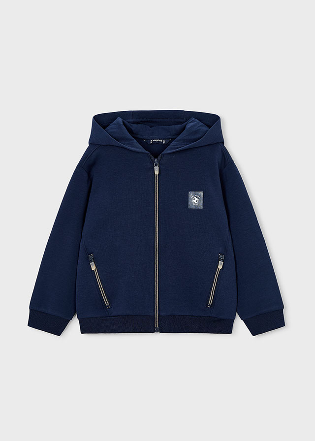 Rozpinana, granatowa bluza dla chłopca z motywem.