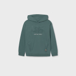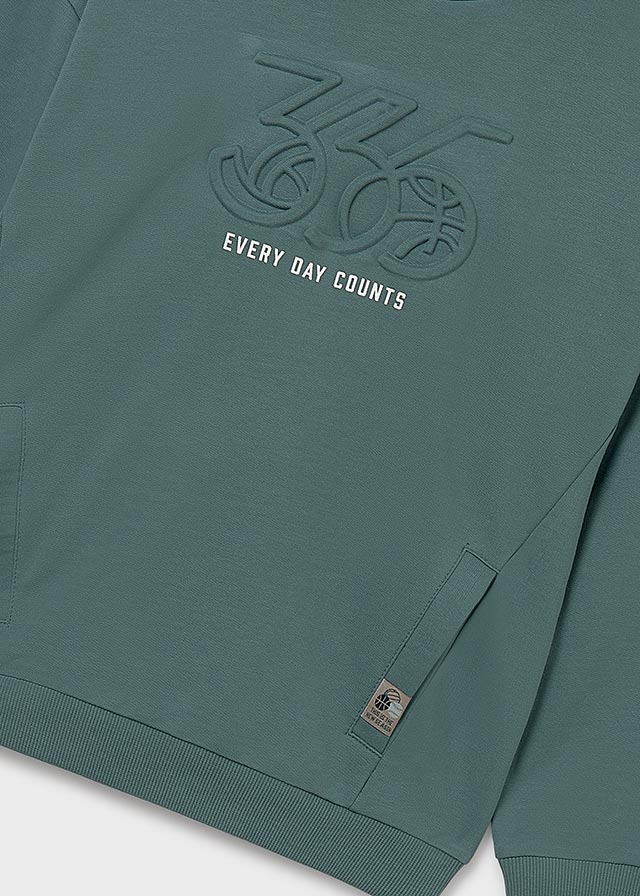 Szałwiowa bluza dla chłopca z kapturem wszytym w kołnierz to wygodny i stylowy element codziennej garderoby. Z przodu znajduje się praktyczna, pojemna kieszeń typu kangurka, idealna na drobiazgi lub do ogrzania rąk. Całość zdobi nowoczesny nadruk wykonany metodą sitodruku oraz wypukły detal typu embossed, który dodaje bluzie trójwymiarowego efektu i oryginalnego charakteru. Stonowany, szałwiowy odcień sprawia, że bluza prezentuje się modnie i świeżo, a jednocześnie łatwo ją połączyć z innymi elementami ubioru. Idealna na co dzień – do szkoły, na spacer czy aktywne spędzanie czasu.