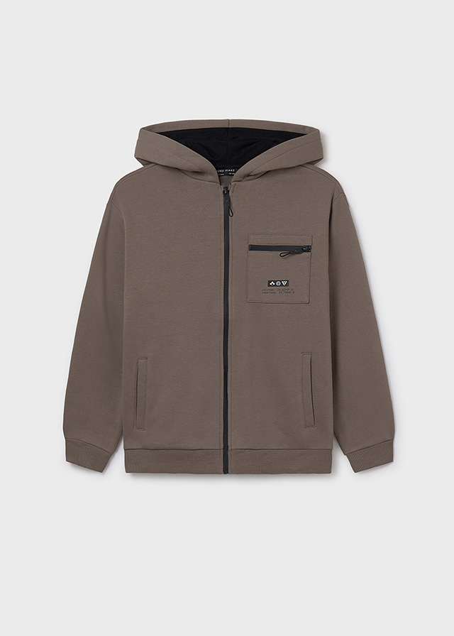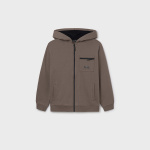 Beżowa bluza dla chłopca zaprojektowana z myślą o funkcjonalności i stylu, wyposażona w wygodny kaptur wszyty w kołnierz oraz praktyczne zapięcie na zamek błyskawiczny umieszczone na środku. Model wyróżnia się licznymi kieszeniami, które nie tylko podkreślają sportowy charakter bluzy, ale też zwiększają jej użyteczność na co dzień. Całość dopełniają nowoczesne ozdoby w formie sitodruku oraz wytłoczonego detalu wykonanego w technologii high density print, nadające bluzie oryginalny, trójwymiarowy efekt. Idealna jako okrycie wierzchnie w chłodniejsze dni – sprawdzi się zarówno do szkoły, jak i podczas aktywności na świeżym powietrzu.