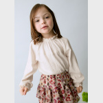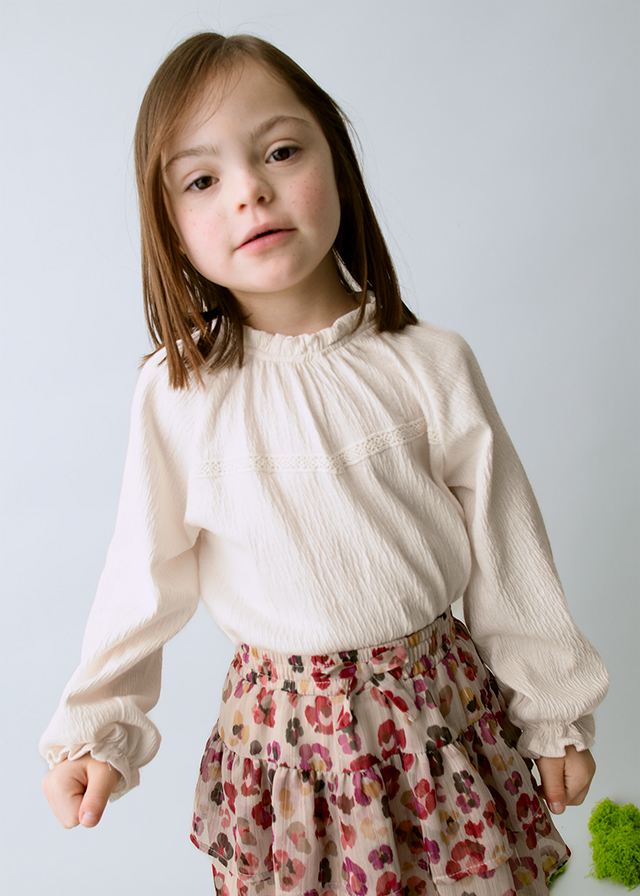 Delikatna i pełna uroku koszulka, wykonana z lekkiej, zwiewnej tkanin, która subtelnie układa się na sylwetce, nadając całości wyjątkowo dziewczęcego charakteru. Materiał wyróżnia się miękkością, lekkością i delikatnym połyskiem, dzięki czemu bluzeczka doskonale sprawdzi się zarówno na co dzień, jak i na bardziej odświętne okazje.