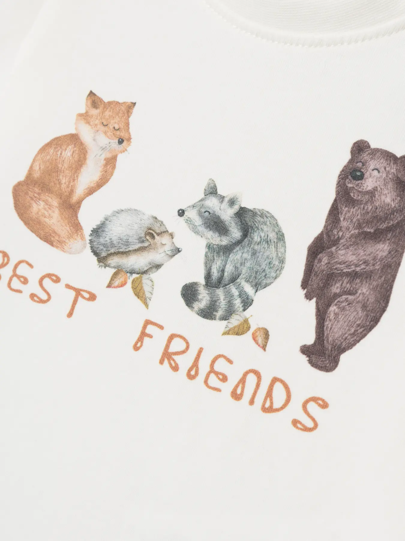 Z przodu miękki nadruk przedstawiający leśne zwierzęta.