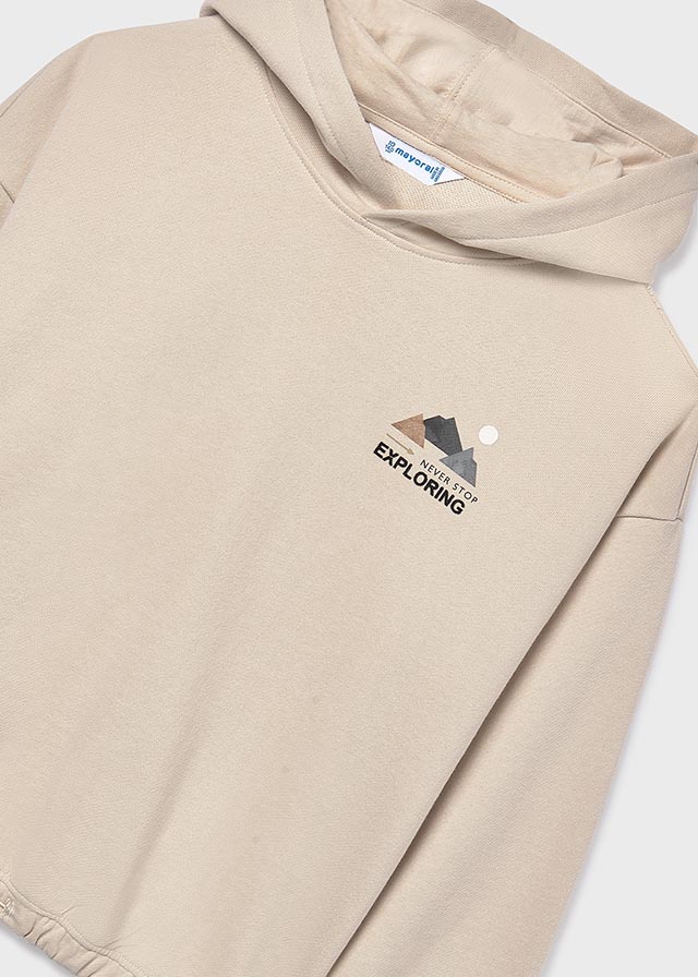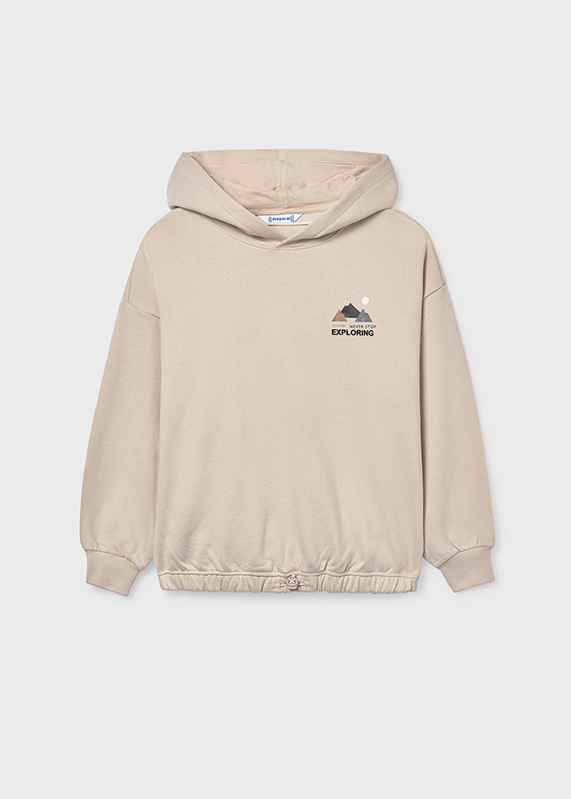 Dziewczęca bluza z kapturem o przedłużonym kroju, zaprojektowana z myślą o codziennym komforcie i modnym wyglądzie. Dół bluzy wyposażono w praktyczny sznurek, który umożliwia regulację szerokości – to świetne rozwiązanie, które pozwala dopasować fason do sylwetki i stylizacji. Neutralne kolory i minimalistyczny nadruk sprawiają, że bluza ma uniwersalny charakter – będzie pasować do wielu ubrań i na różne okazje.