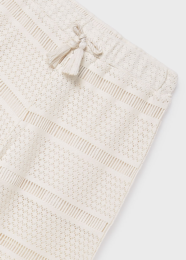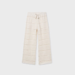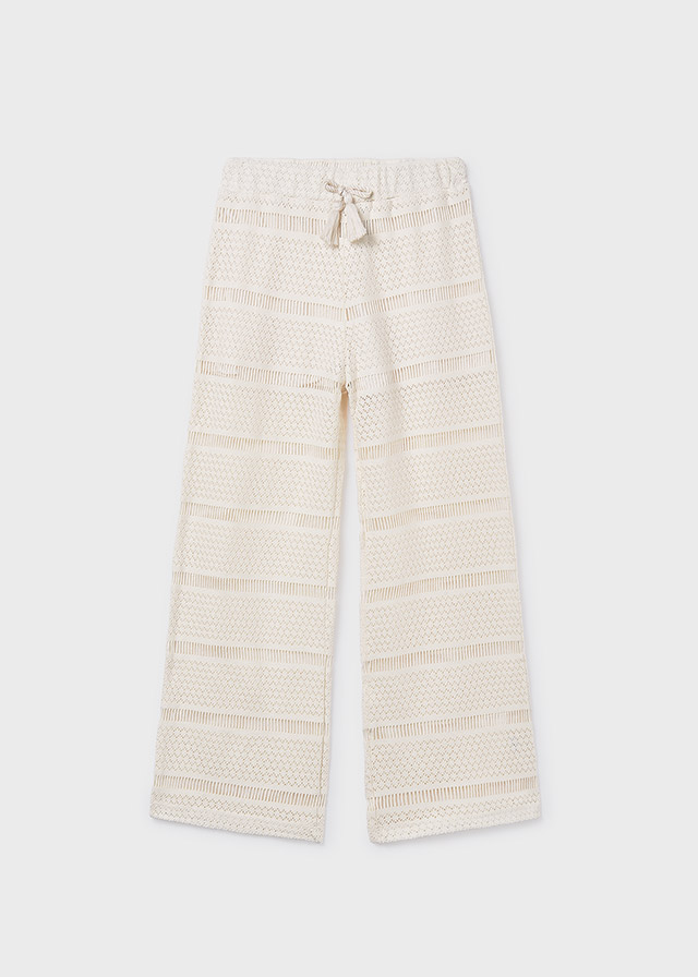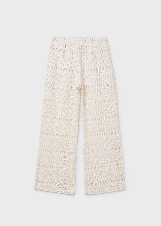 Kremowe szerokie spodnie crochet dla dziewczynki.