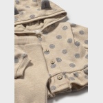 Bluza została wyposażona w kaptur z delikatnym kołnierzem oraz wygodne zapięcie na guziki z przodu. Uroku dodają jej miękkie aplikacje w kształcie uszek.