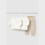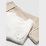 Spodnie mają przedłużaną nogawkę, dzięki czemu rosną razem z dzieckiem i zapewniają dłuższe użytkowanie. Neutralna kolorystyka oraz uniwersalny krój sprawiają, że cały komplet doskonale sprawdzi się zarówno u dziewczynek, jak i u chłopców.