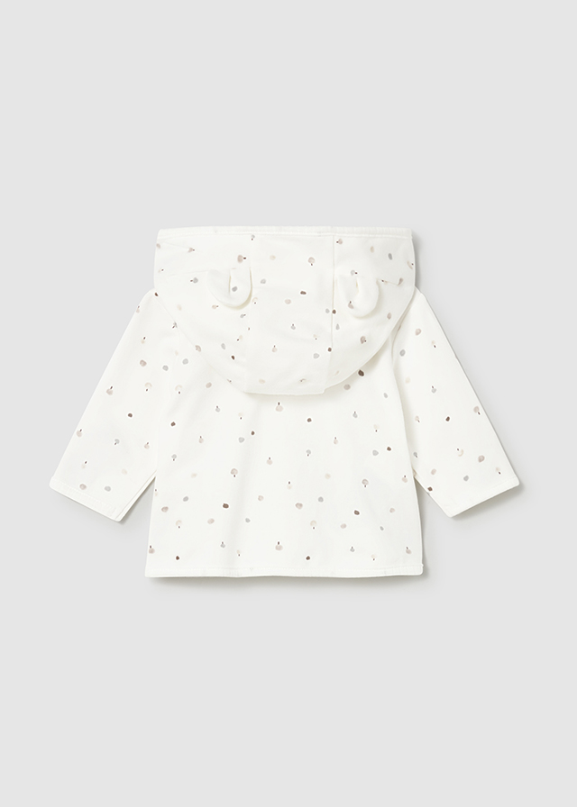 Bluza została zaprojektowana z myślą o maksymalnej wygodzie maluszka – posiada kaptur z uroczymi aplikacjami uszek oraz zapięcie na guziki z przodu, które ułatwia szybkie ubieranie. Delikatny nadruk dodaje całości słodkiego, dziecięcego charakteru.