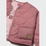 Różowa dwustronna kurtka przeciwwiatrowa dla dziewczynki (ze wzorem wiśni).
