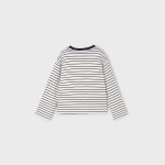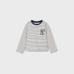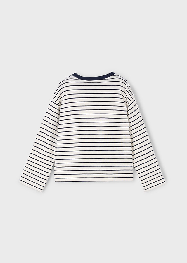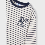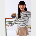 Wygodna koszulka z okrągłym dekoltem, ozdobiona delikatnym haftem. Klasyczny motyw w paski pasuje zarówno dla dziewczynek, jak i chłopców.