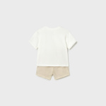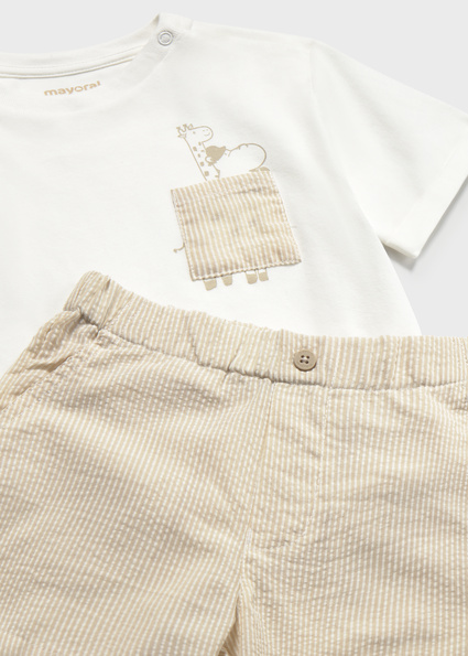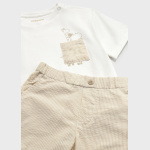 Komplet dla chłopca składający się z bermudów i koszulki.