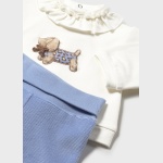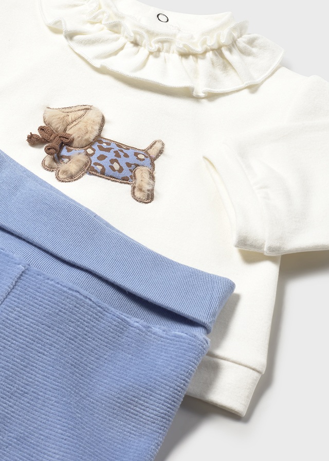 Sweterek został uszyty z delikatnej, elastycznej bawełny, która zapewnia wyjątkowy komfort dla wrażliwej skóry maluszka. Zapinany na praktyczne zatrzaski umieszczone na plecach, ułatwiające zakładanie i zdejmowanie. Całość zdobi subtelny haft, nadający ubranku elegancki, dziecięcy charakter.