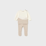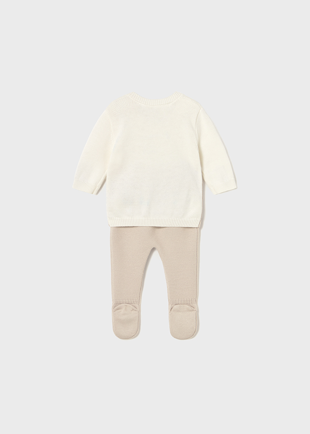 Komplet trykotowy 2-częściowy dla noworodka, składający się ze swetra i półśpiochów.
