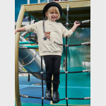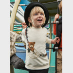 Wygodna bluza z klasycznym, okrągłym dekoltem. Na przodzie znajduje się dekoracyjny sitodruk (print), który dodaje stylu i dziecięcej radości. Miękki, przyjemny w dotyku materiał sprawdzi się zarówno na co dzień, jak i podczas aktywności.