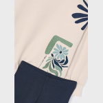Dziewczęca bluza o swobodnym, wygodnym fasonie z okrągłym dekoltem i obniżoną linią ramion, która nadaje całości modnego, nieco oversize’owego charakteru. Dół wykończono elastyczną gumką, dzięki czemu bluza dobrze układa się na sylwetce i pozostaje na swoim miejscu podczas ruchu. Całość urozmaicają dekoracyjne hafty oraz nadruk wykonany techniką sitodruku, dodające ubraniu wyjątkowego uroku.