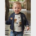 Miękka koszulka dla chłopca, zaprojektowana z myślą o codziennym komforcie malucha. Posiada klasyczny, okrągły dekolt, który delikatnie otula szyję dziecka i nie powoduje podrażnień. Z przodu znajduje się urocza, ozdobna kieszonka, która pełni zarówno funkcję dekoracyjną, jak i dodaje całości subtelnego charakteru. Dodatkowo koszulkę zdobi trwały nadruk wykonany metodą sitodruku, zapewniający wyraziste kolory i odporność na częste pranie.