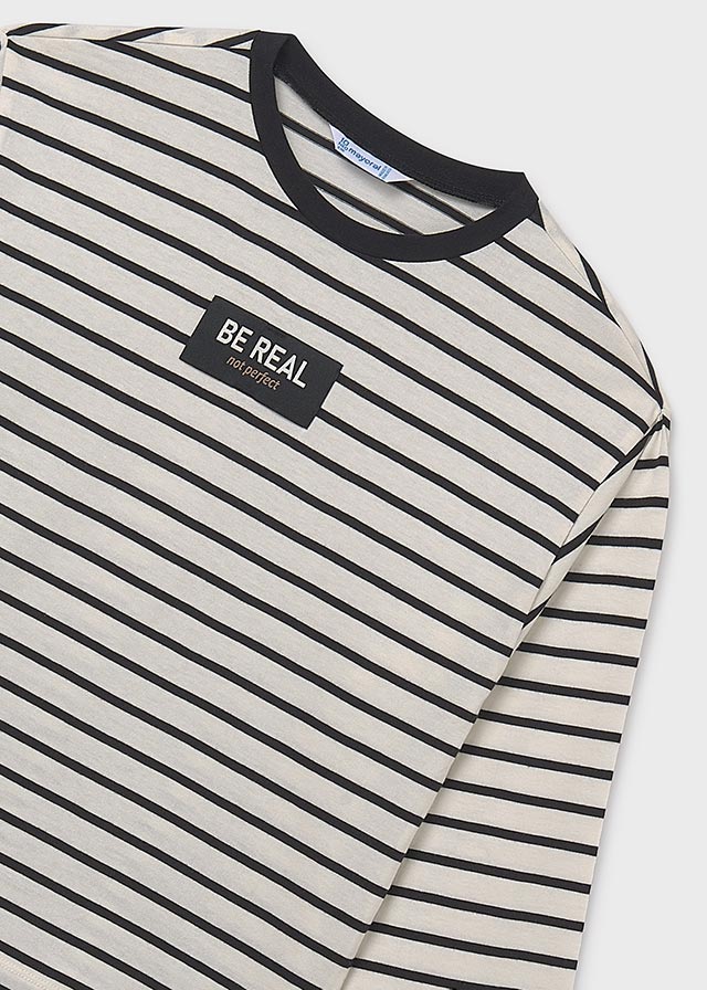 Dziewczęca koszulka z długim rękawem wykonana w 100% z bawełny, idealna na co dzień i chłodniejsze dni. Klasyczny wzór w paski nadaje jej ponadczasowego, modnego charakteru, który świetnie sprawdza się w wielu stylizacjach – zarówno sportowych, jak i bardziej dziewczęcych. Fason jest wygodny i swobodny, zapewnia pełen komfort ruchu podczas zabawy i codziennych aktywności.