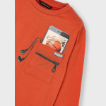 Front zdobi efektowny nadruk wykonany metodą sitodruku (print) -trwały i odporny na pranie. Wesoły, dynamiczny wzór podkreśla charakter koszulki i dodaje jej sportowego, chłopięcego stylu.