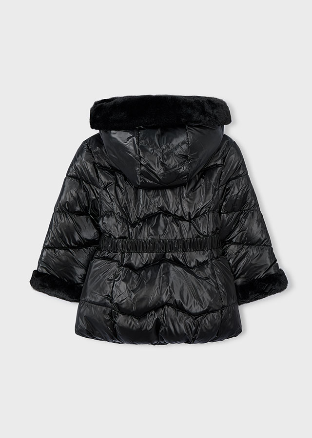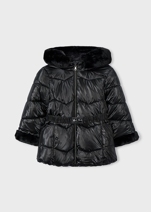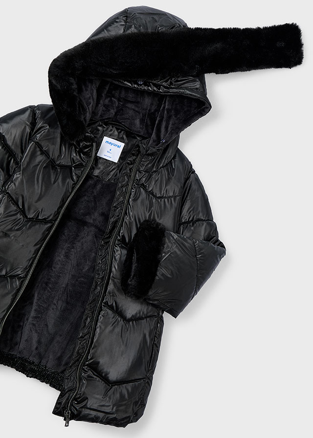 Kurtka posiada praktyczny kaptur z ozdobnym, miękkim futerkiem, który nie tylko wygląda efektownie, ale także chroni przed wiatrem i zimnem w chłodniejsze dni. Centralne zapięcie na zamek błyskawiczny umożliwia łatwe i szybkie zakładanie oraz zdejmowanie kurtki – idealne dla ruchliwych dzieci.