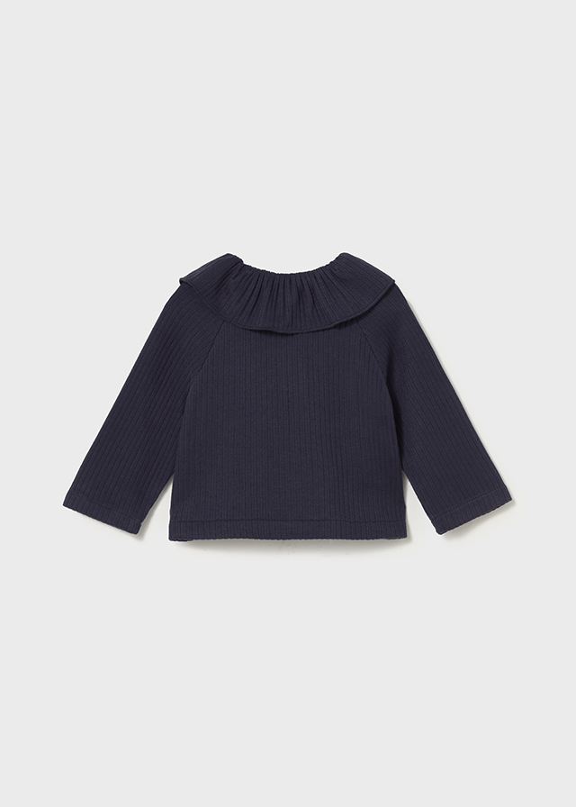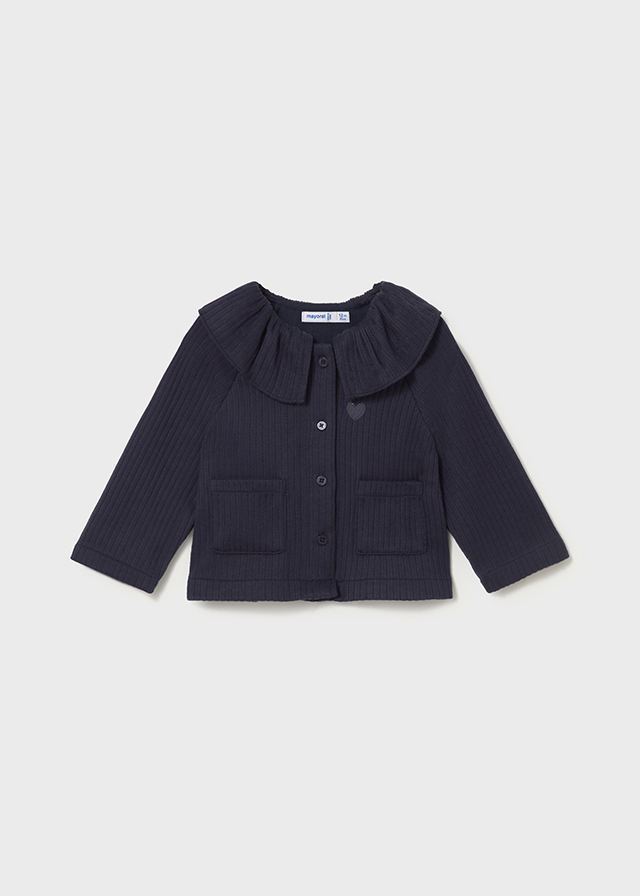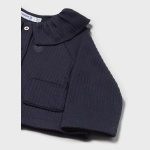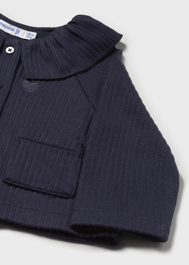 Urocza kurtka dla dziewczynki, zaprojektowana z myślą o komforcie oraz wyjątkowym wyglądzie najmłodszych. Model posiada delikatny, okrągły dekolt wykończony subtelną falbanką, która nadaje całości dziewczęcego, lekkiego charakteru. Zapięcie z przodu na guziki sprawia, że ubieranie maluszka jest szybkie i wygodne, a jednocześnie pozwala na idealne dopasowanie kurtki.