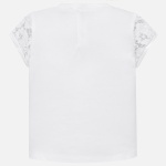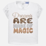 Koszulka z krótkim rękawem wykonana z materiału w kontrastowych kolorach dla dziewczynki Baby. Okrągły dekolt. Zapięcie na ukryte zatrzaski, które pozwolą w łatwy sposób założyć ubranko. Delikatna i elastyczna bawełna. Ozdoby: strass, napis na przodzie ubranka.