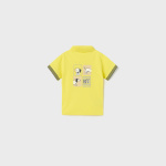 Polo z krótkim rękawem z detalami w kontrastowych kolorach dla chłopca. Klasyczny kołnierzyk polo. Artykuł wykonany ze 100% bawełny. Nadruk ze zwierzątkami.