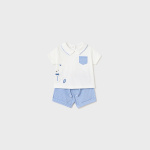 Zestaw czterech ubranek składający się z dwóch kompletów koszulek z krótkim rękawem i pasujących szortów.