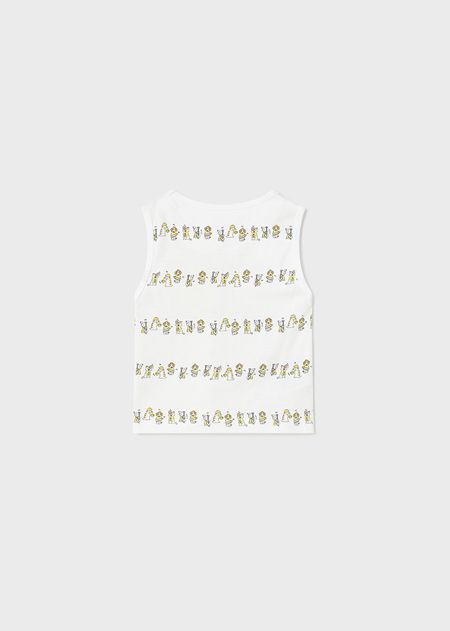 Koszulka bez rękawków. Okrągły dekolt. Z przodu funkcjonalna kieszeń. Projekt z nadrukiem.