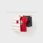 Komplet trzech ubranek dla chłopca, składający się z dwóch koszulek i dobranych krótkich spodni.