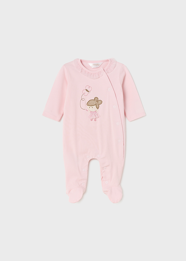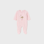 Piżama z długim rękawem dla noworodka. Zapięcie na zatrzaski w kroku ułatwiające zakładanie. Zapięcie z przodu na guziki.