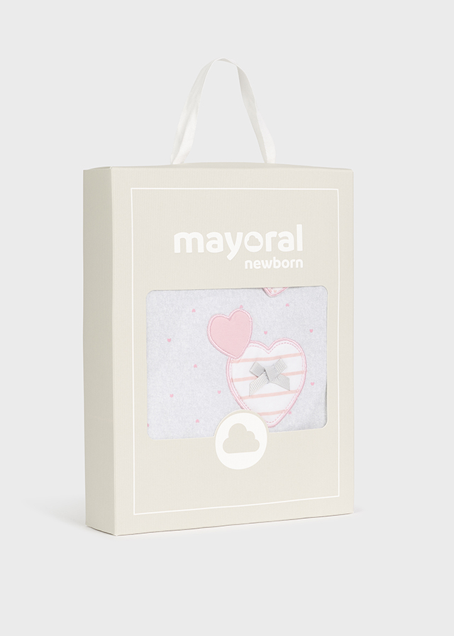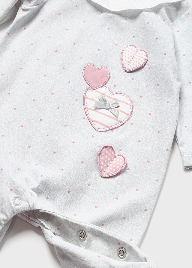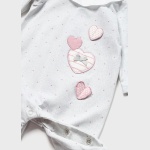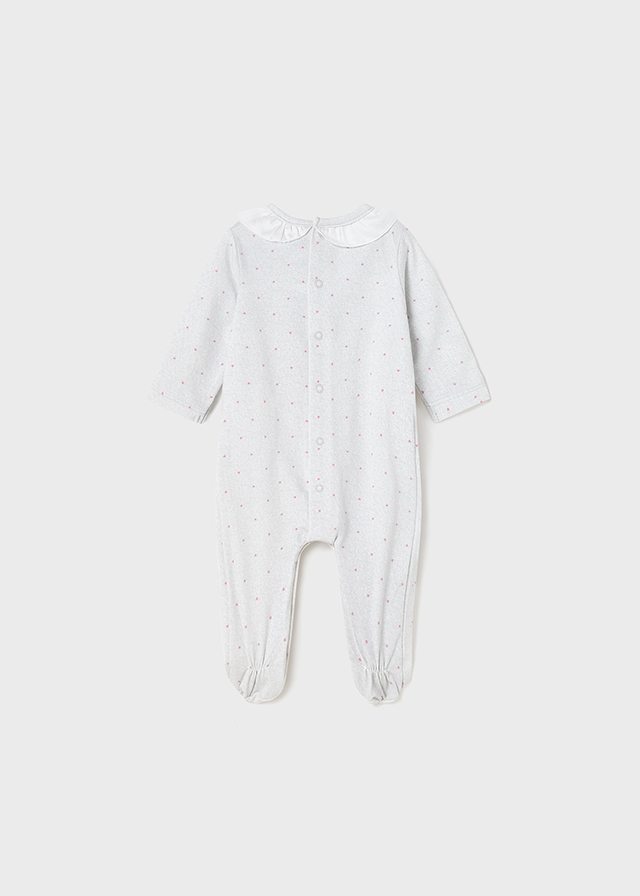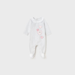 Piżama z długim rękawem dla noworodka. Zapięcie na małe zatrzaski na plecach, które ułatwiają założenie ubranka. Zapięcie na zatrzaski w kroku ułatwiające zakładanie. Artykuł ten jest pakowany w pudełeczko z linii Newborn, idealnie pasujące na specjalne okazje.
