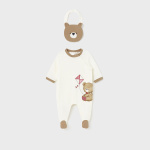 Śpioszki z długim rękawem dla noworodka. Zapięcie na zatrzaski z boku i w kroku ułatwiające zakładanie.