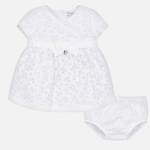 Komplet dla dziewczynki Newborn składający się z dwóch ubranek, sukienki i pasujących majteczek.