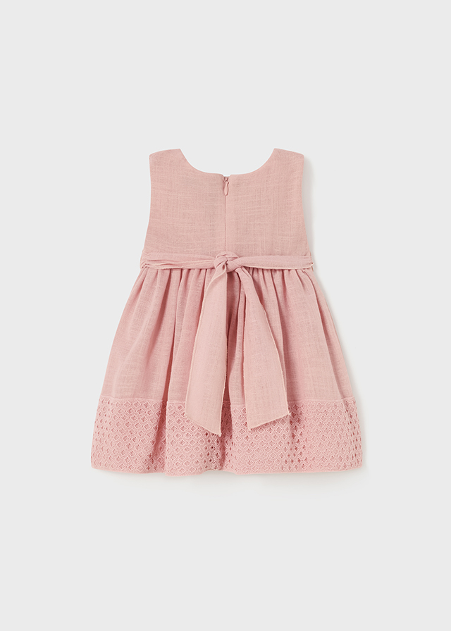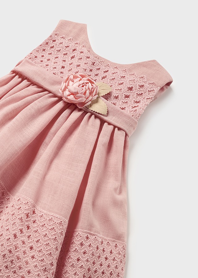 Sukienka bez rękawków. Zapięcie na plecach z ukrytym suwakiem. Artykuł wykonany z gipiury, doskonałe na bardziej eleganckie okazje. Mieszanka dobrej jakości materiałów, które umożliwiły uzyskanie niepowtarzalnego projektu.
