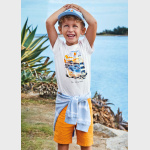 Krótkie spodnie typu bermudy dla chłopca. Zapięcie na zamek i guzik. Funkcjonalne kieszenie zarówno z przodu jak i z tyłu ubranka. Ze względu na wymogi bezpieczeństwa, mniejsze rozmiary (3-5 lat) posiadają imitację rozporka, bez zamka.