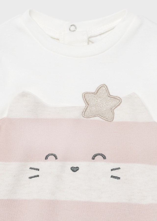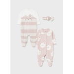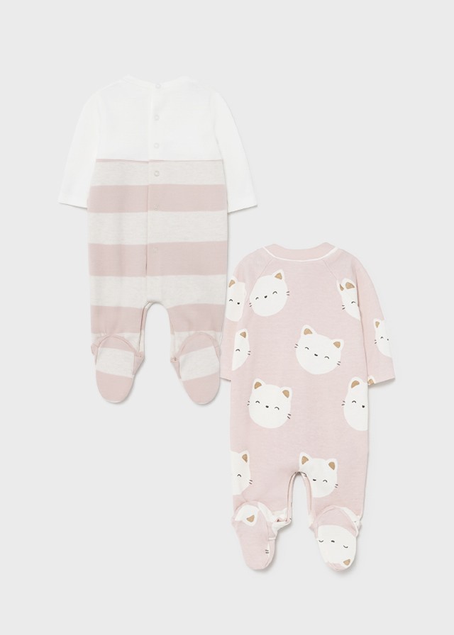 Piżama z długim rękawem dla dla noworodka dziewczynki 0 do 18 miesięcy. Śpioszki ze stópkami. Okrągły dekolt. Zapięcie na małe zatrzaski na plecach, które ułatwiają założenie ubranka. Zapięcie na zatrzaski w kroku. Motyw w paski.