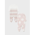 Piżama z długim rękawem dla noworodka dziewczynki 0 do 18 miesięcy. Śpioszki ze stópkami. Okrągły dekolt. Zapięcie z tyłu na zatrzask. Zapięcie na zatrzaski w kroku. Większe rozmiary tego modelu posiadają antypoślizgową podeszwę.