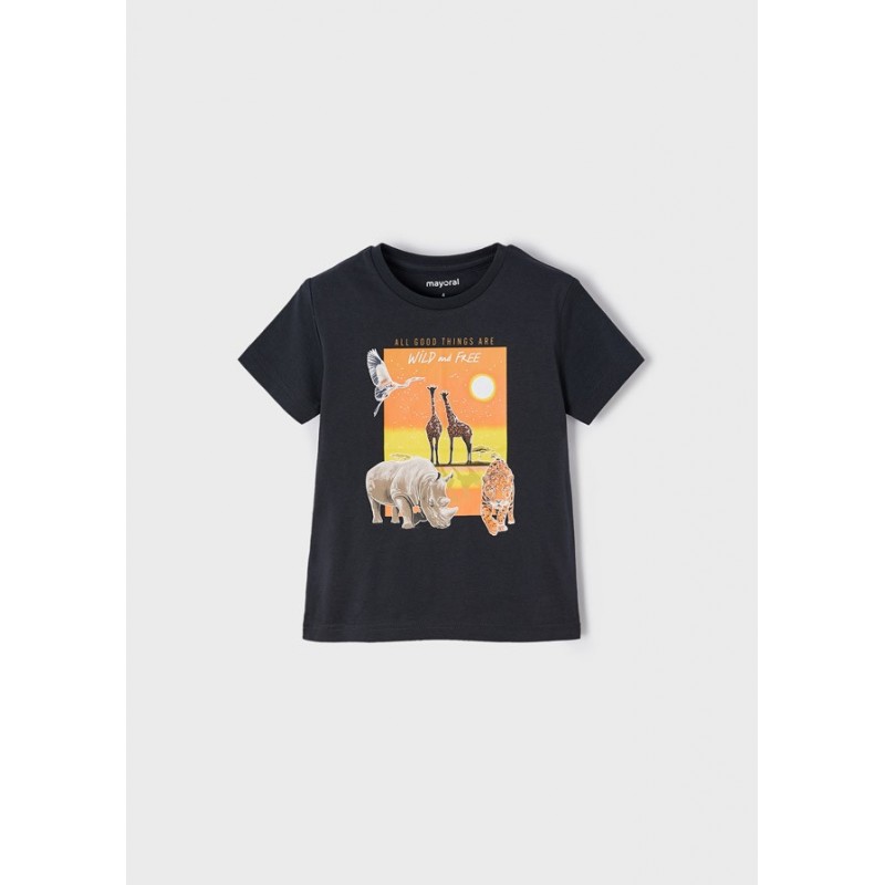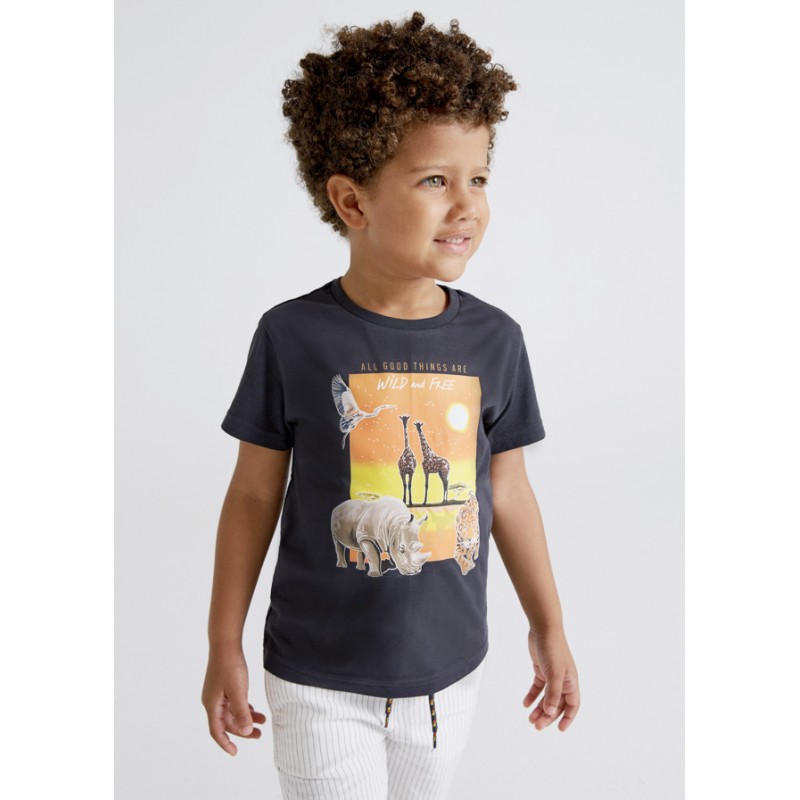 Projekt z nadrukiem zwierzęta i krajobraz dżungli.