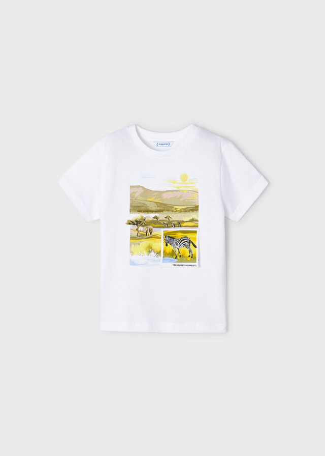 Koszulka w uniwersalnym kolorze z krótkim rękawem dla chłopca.