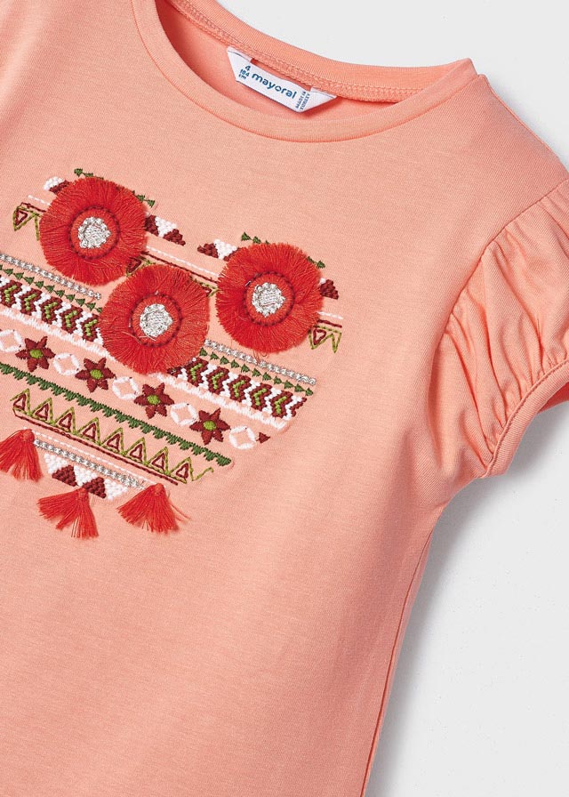 MAYORAL 3058-46 Koszulka z krótkim rękawem z bawełny haft dla dziewczynki MINI