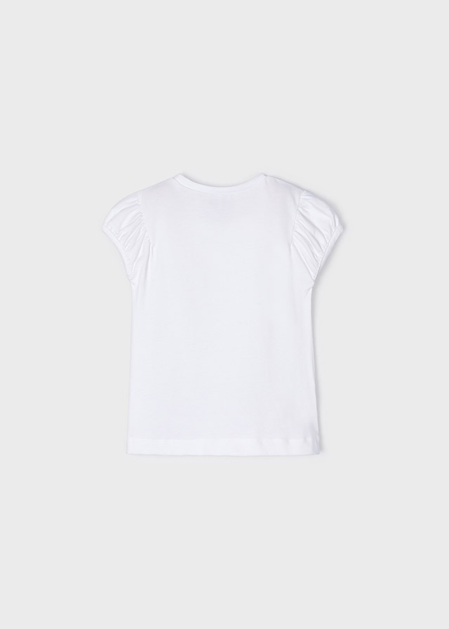 Z przodu haftowane serce z kwiatami, bardzo dziewczęcy, delikatny motyw.