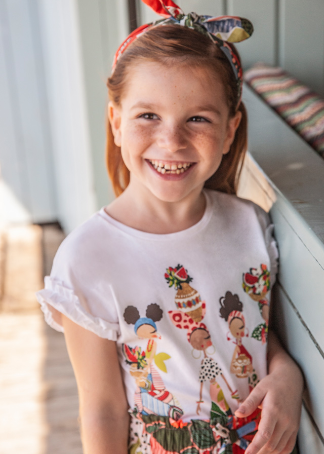 MAYORAL 3036-47 Koszulka dla dziewczynki z falbankami i nadrukiem