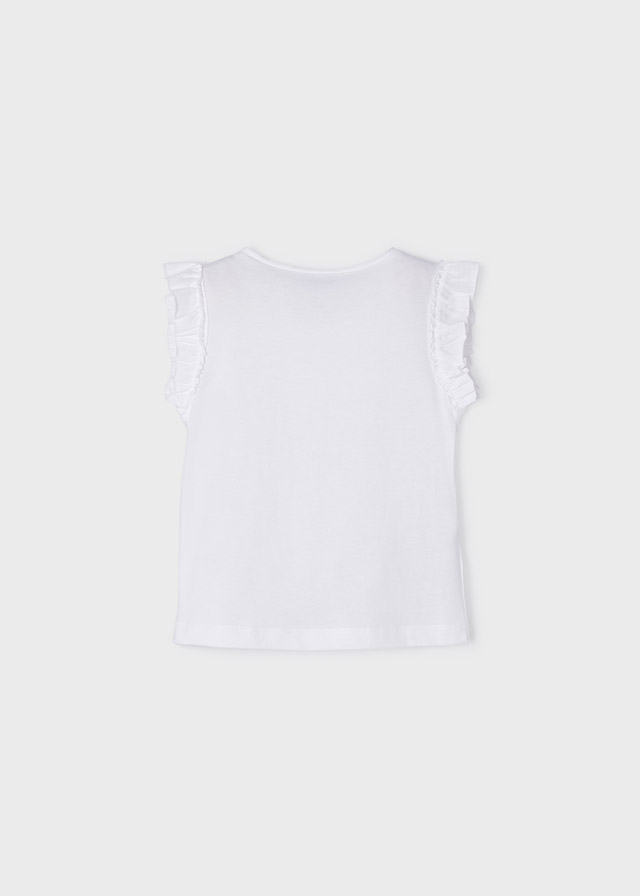 Krótkie rękawki zakończone falbankami, które sprawiają, że koszulka staje się ciekawa.