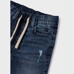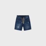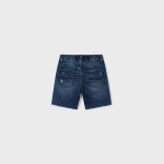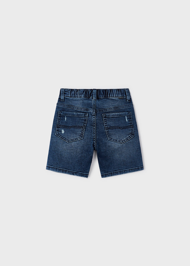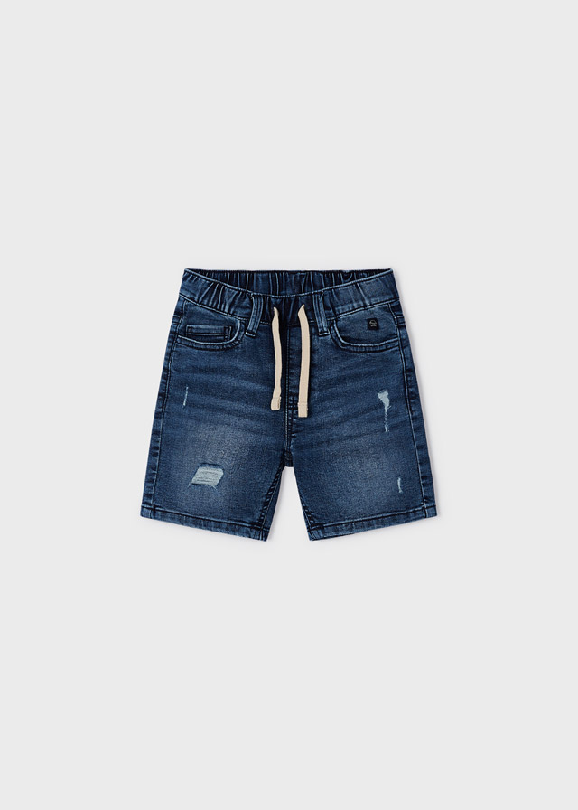 Krótkie spodnie typu bermudy dla chłopca. W pasie wewnętrzny sznurek do regulacji. Nowoczesna tkanina jeansowa z efektem sprania. Funkcjonalne kieszenie zarówno z przodu jak i z tyłu ubranka.
