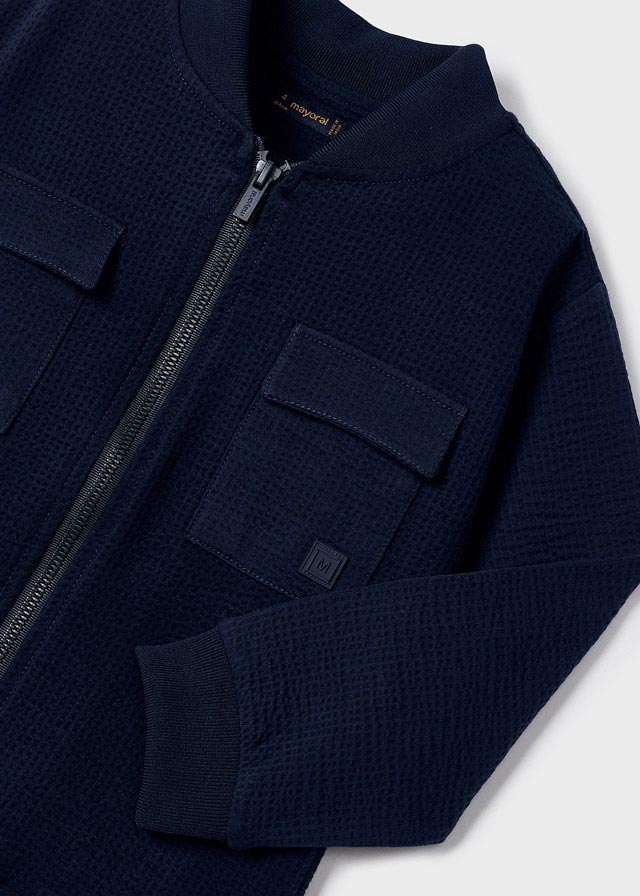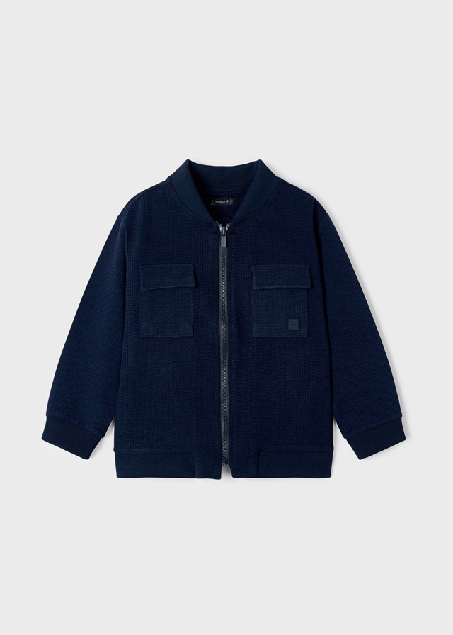 Bluza z długim rękawem dla chłopca. Stójka. Zapięcie na środku na zamek błyskawiczny. Z przodu funkcjonalne kieszenie.