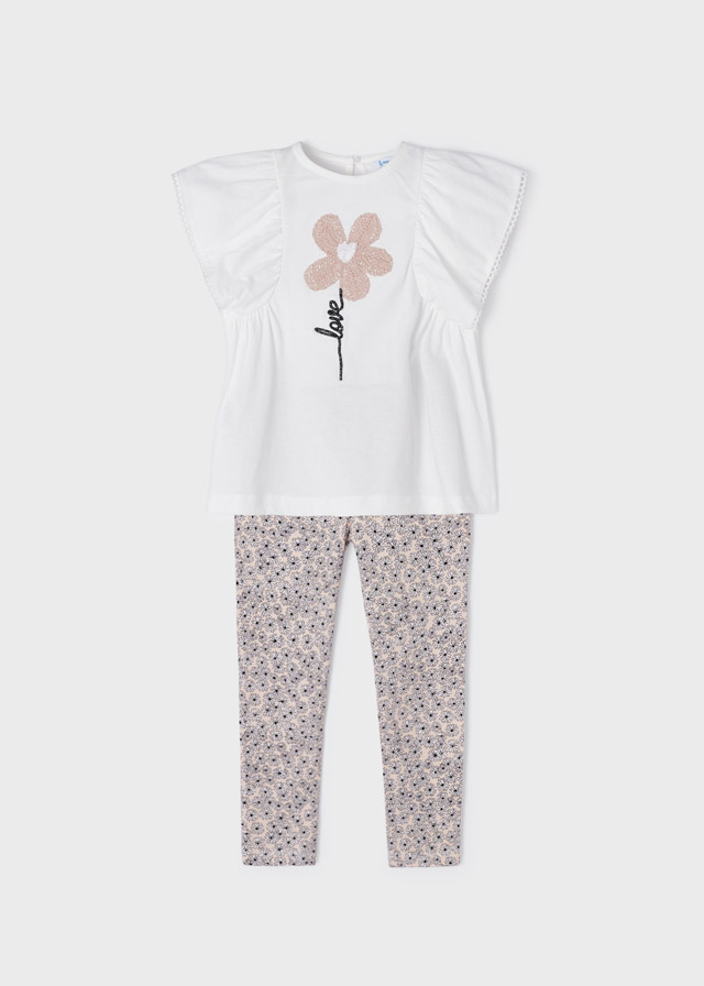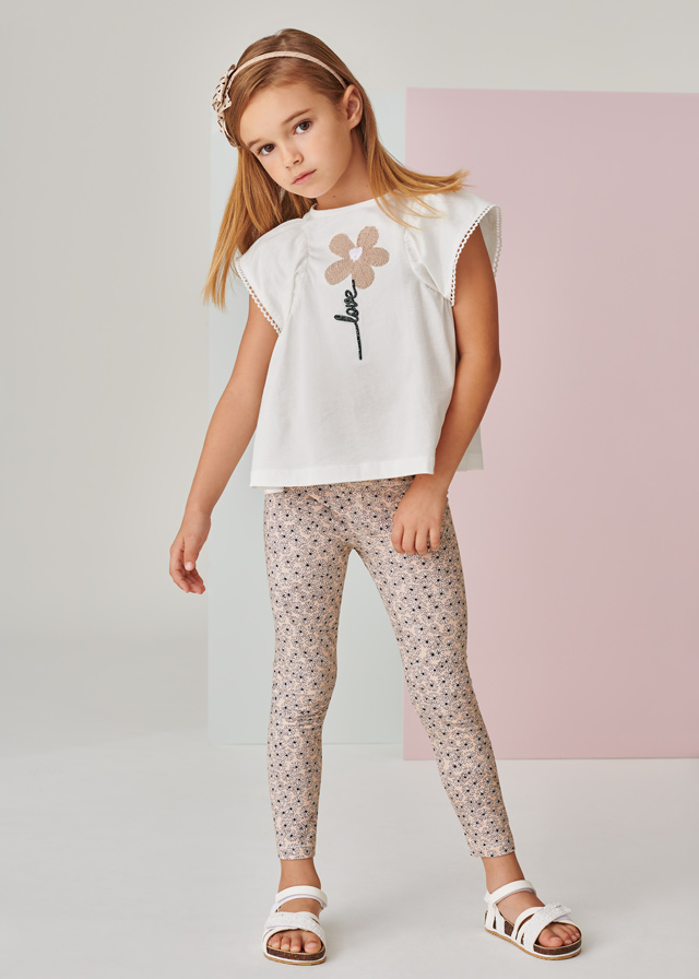 Komplet dwóch artykułów składający się z koszulki ze spodniami typu leginsy dla dziewczynki.